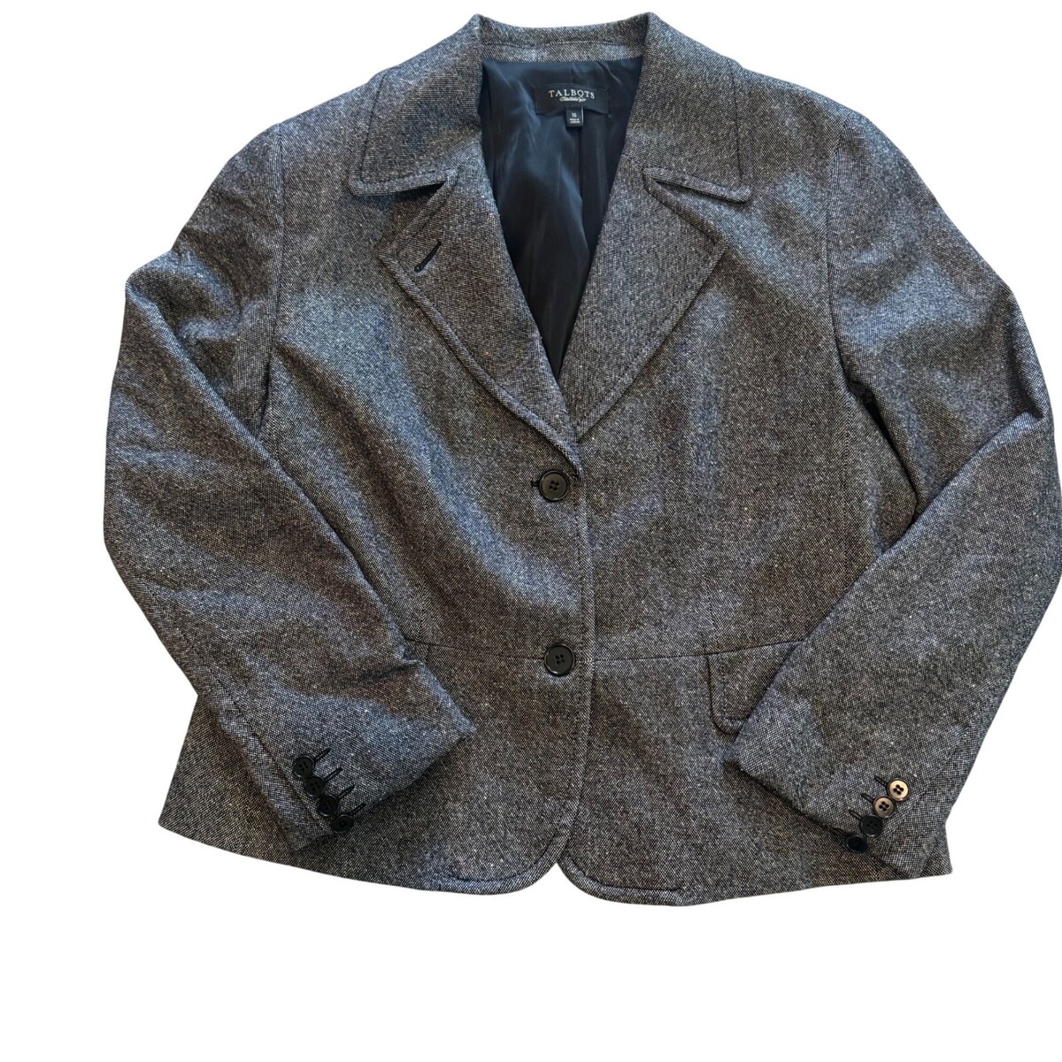 Talbots Womens Charcoal Gray Wool Blend Blazer Size 16 With Button Closure