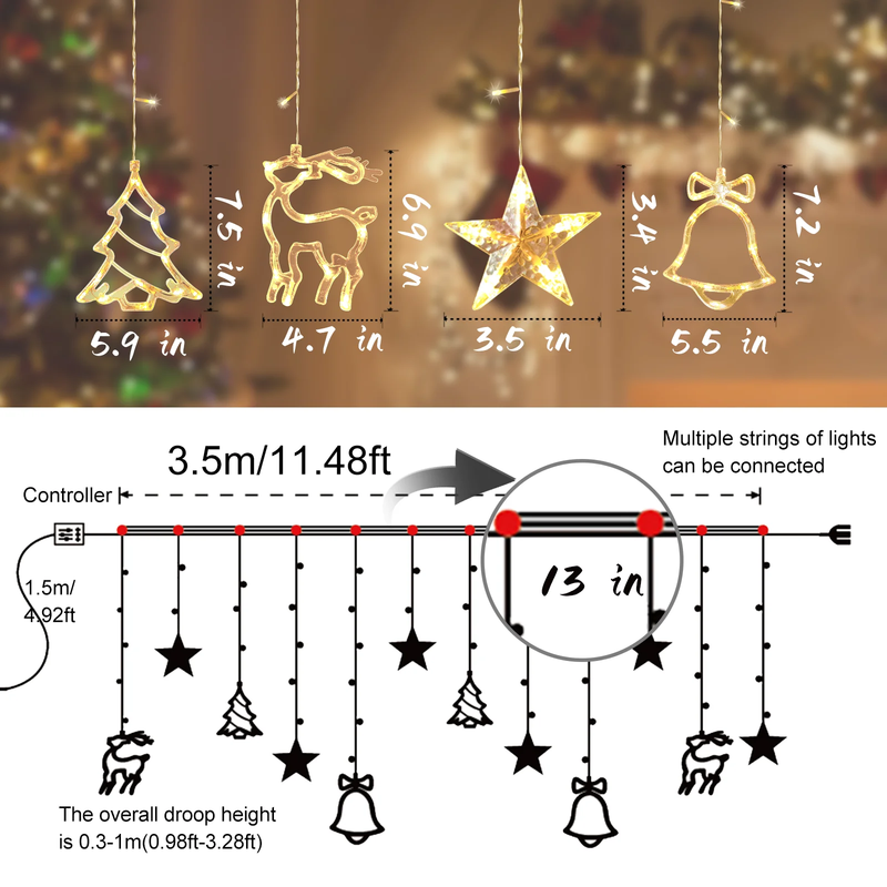 Christmas Decorations, 11.5FT Christmas Hanging Curtain Lights for Indoor Outdoo