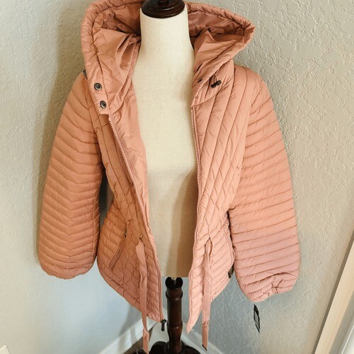 BCBGeneration Diagonal Seam Puffer Hooded Jacket Coral Pink Size Medium (8), NWT