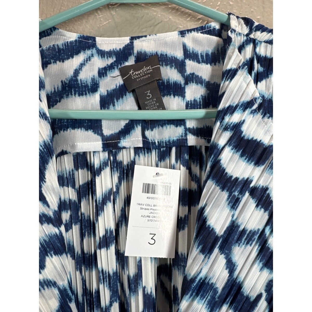 CHICOS Travelers Womens Blue White Cardigan Lightweight Stretchy Size 3/XL NWT