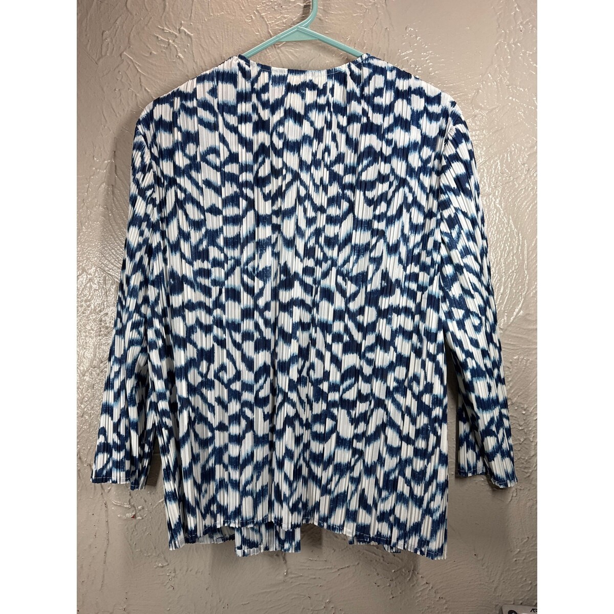 CHICOS Travelers Womens Blue & White Cardigan Lightweight Stretchy Size 3/XL NWT