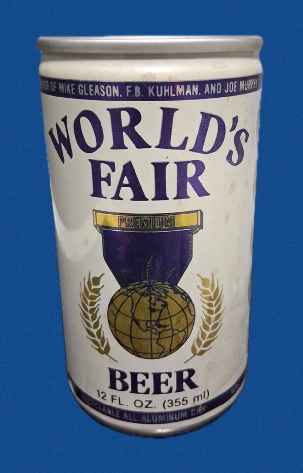 Old Vintage Worlds Fair Beer Can Metal Sign 8x12in Mancave Garage 40
