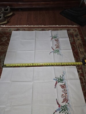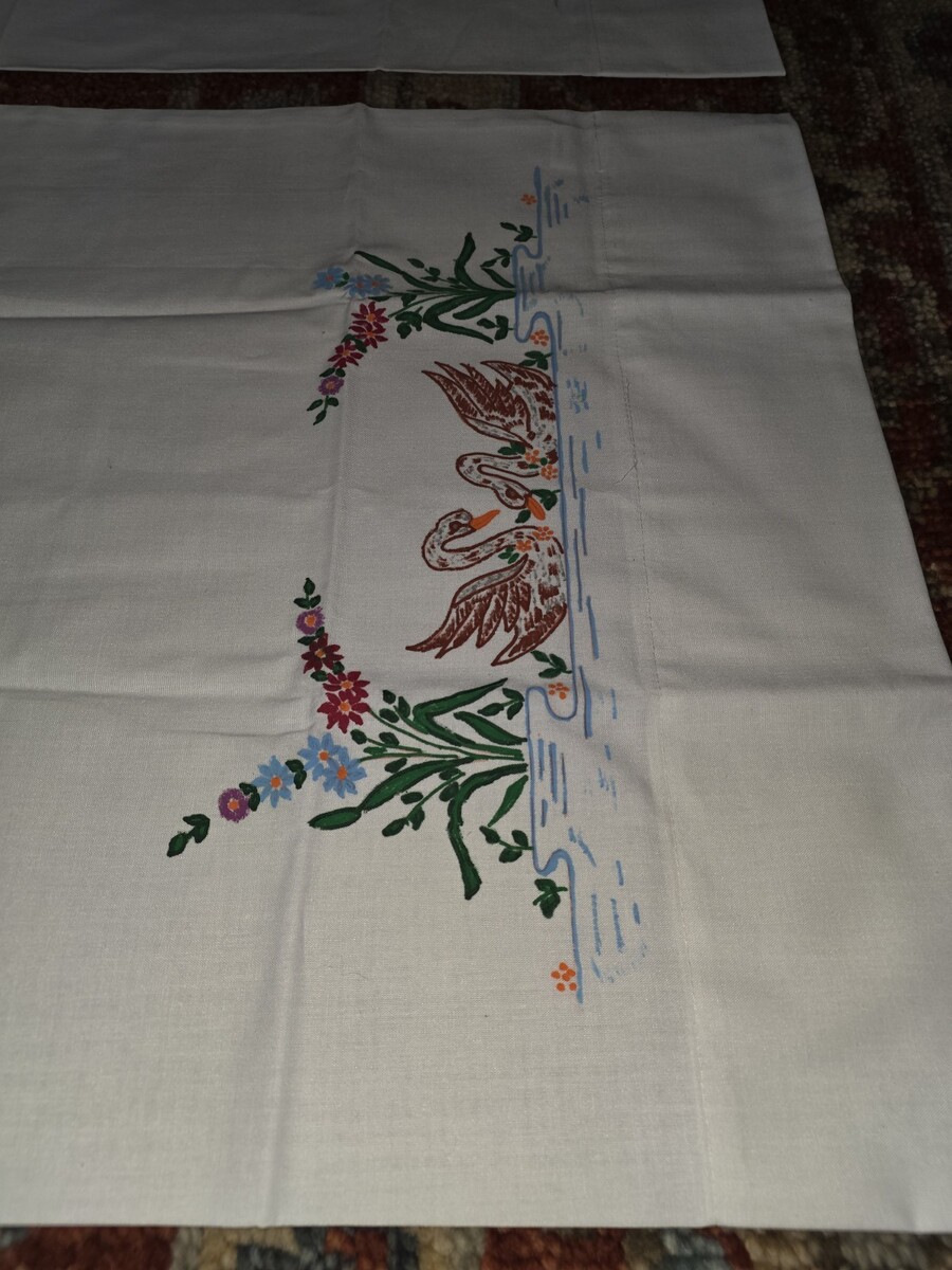 (2) Hand Painted Pillow Cases Geese Flowers Floral Beautiful Vintage