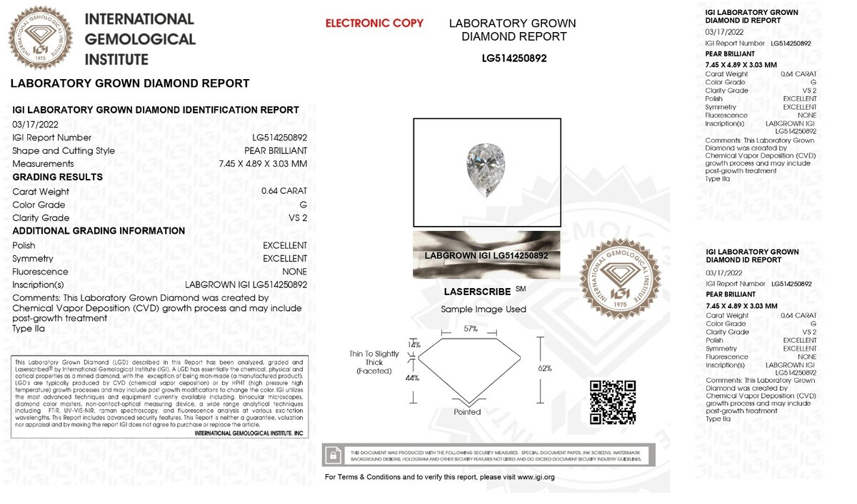 0.64 Ct Pear Cut Igi Certified Lab Grown Cvd and 50 similar items