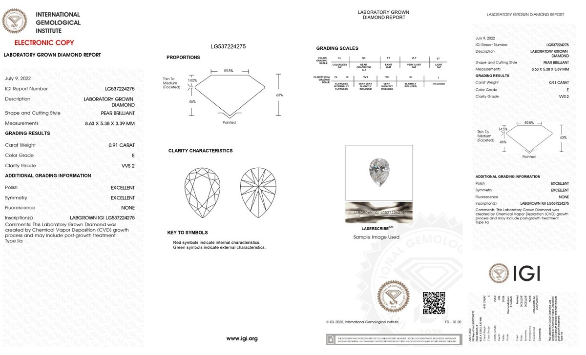 0.91 Ct Pear Cut Igi Certified Lab Grown Cvd and 50 similar items