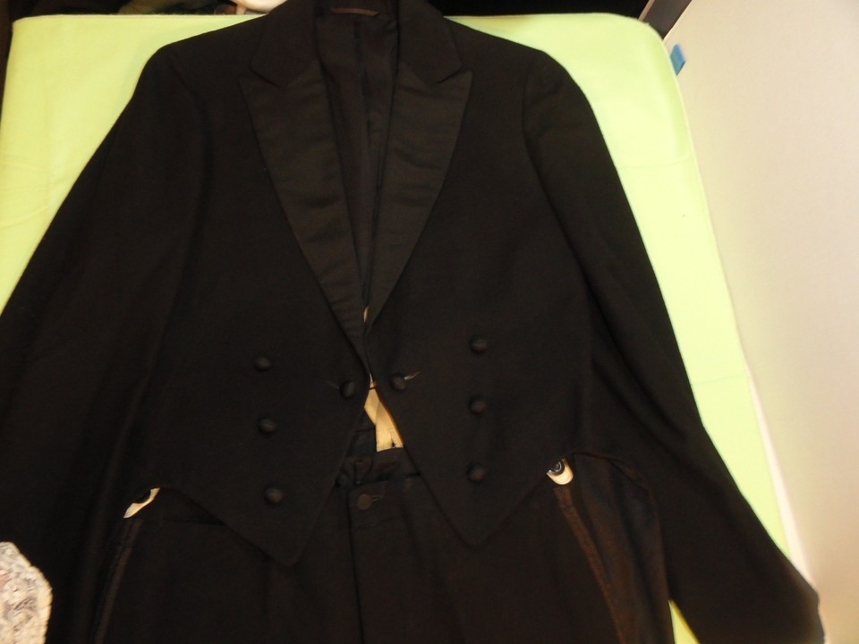 1894 VINTAGE KAUFMAN AND BAER BLACK TUXEDO & TAILS PANTS 32X32 & JACKET 36L