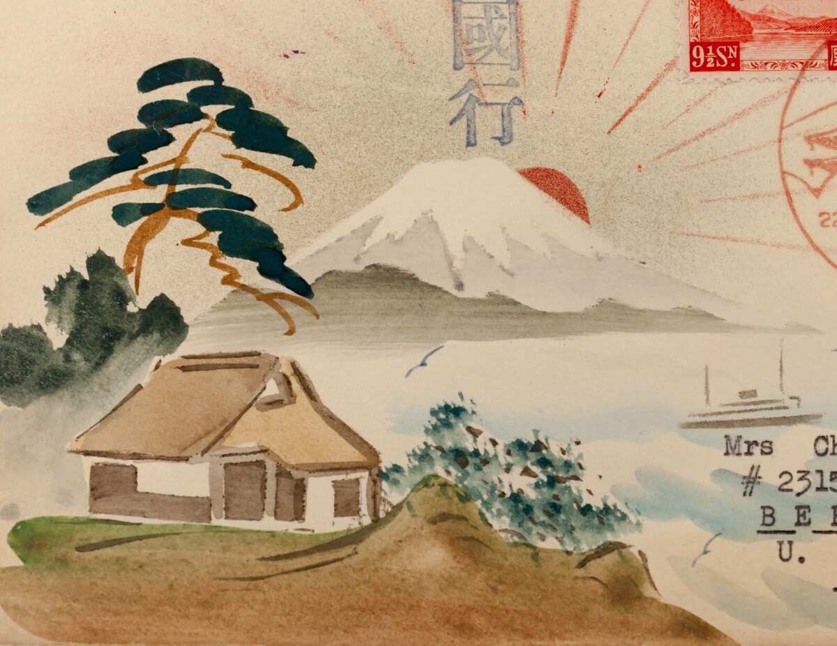 Karl Lewis 1936 Copertura di acquerelli dipinta a mano dal Giappone a CA, USA HIYE MARU C-6