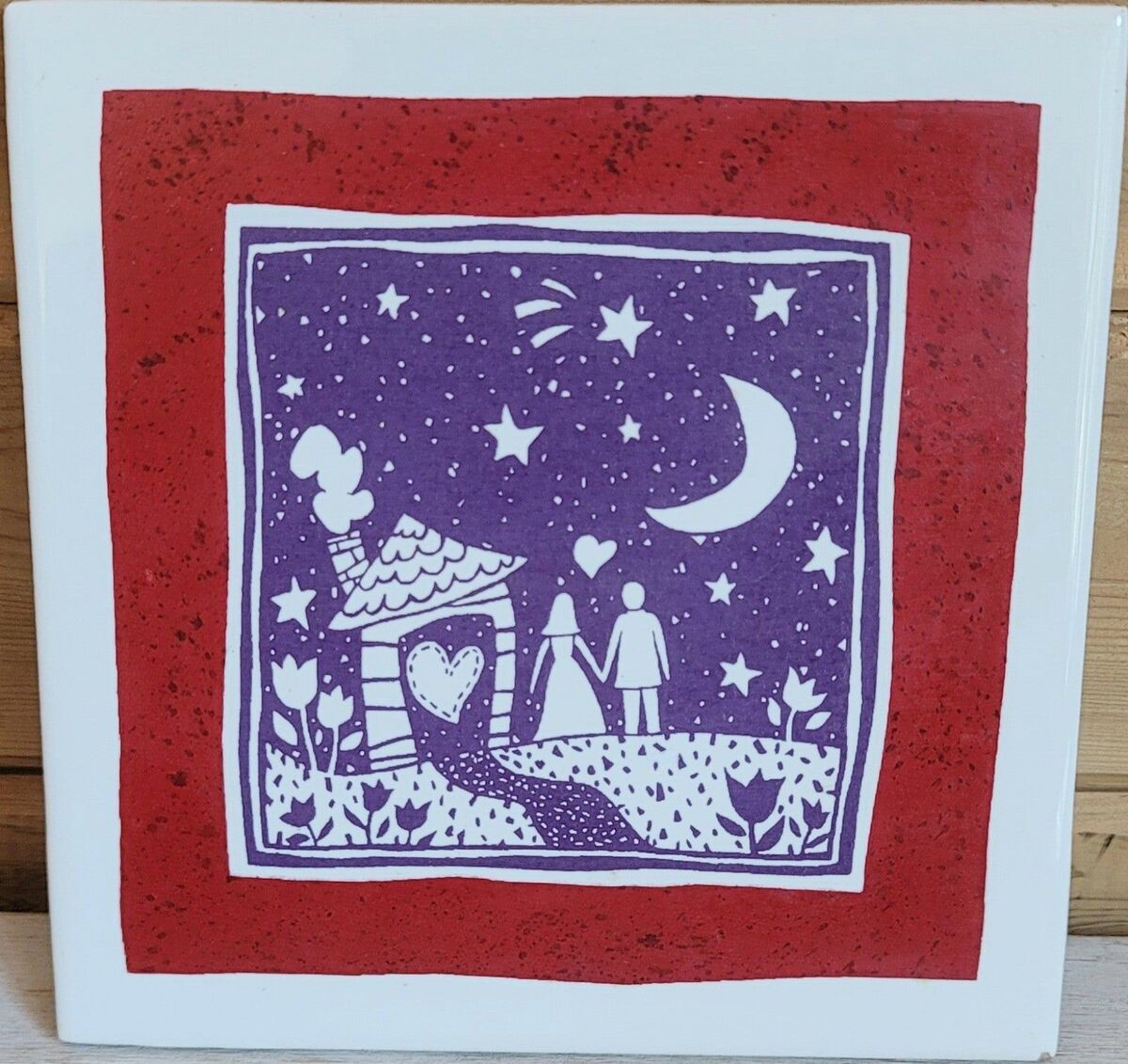 Tile Trivet Ceramic With Couple Under the Moon 6 x 6