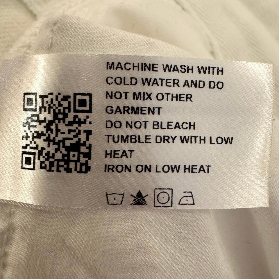Machine wash cold, tumble dry low, iron on low heat.