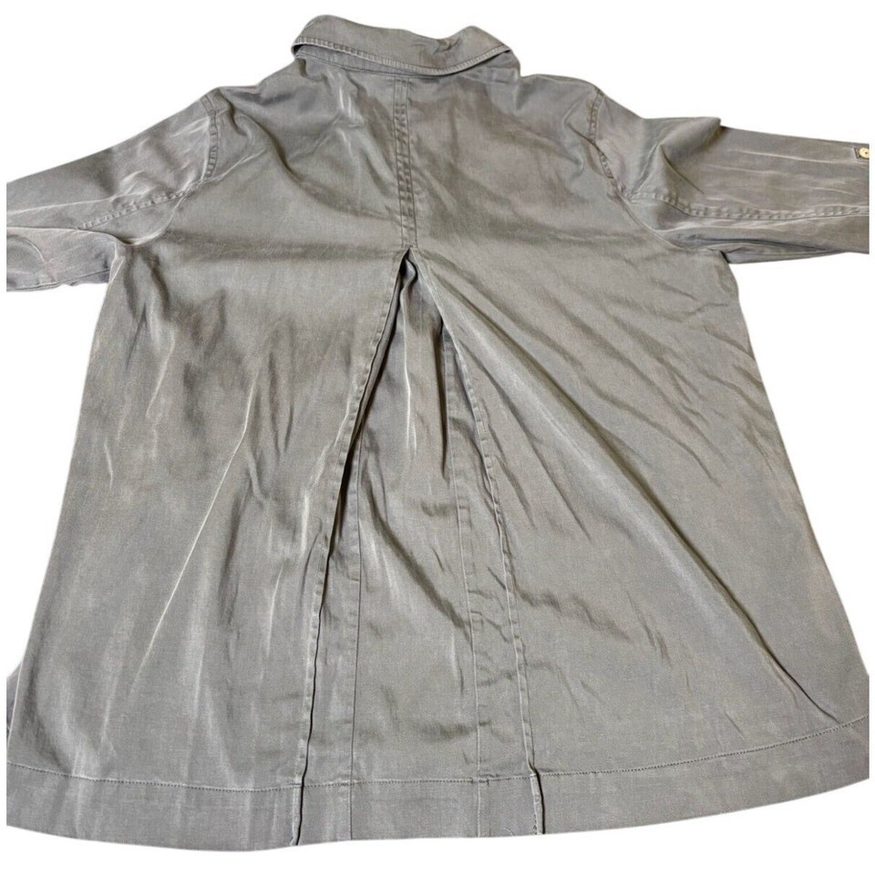 Soft Surroundings Women's Olive Shacket, Button-Front, Roll Tab Sleeves, Pockets