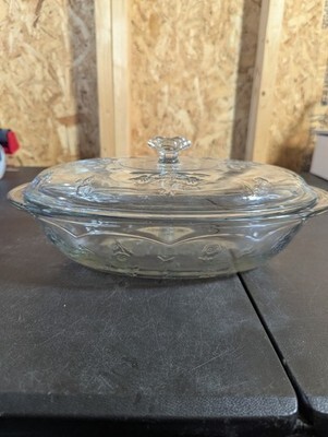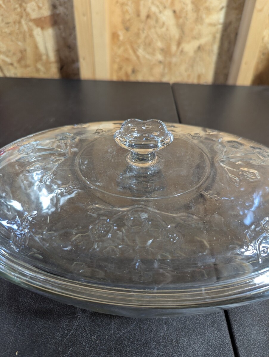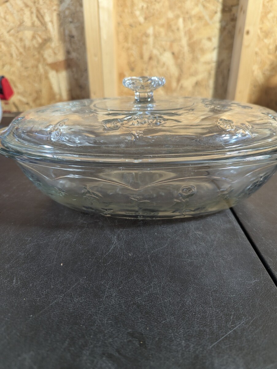 Vintage Anchor Hocking Savannah Floral 2 Qt Oval Casserole Baking Dish Glass