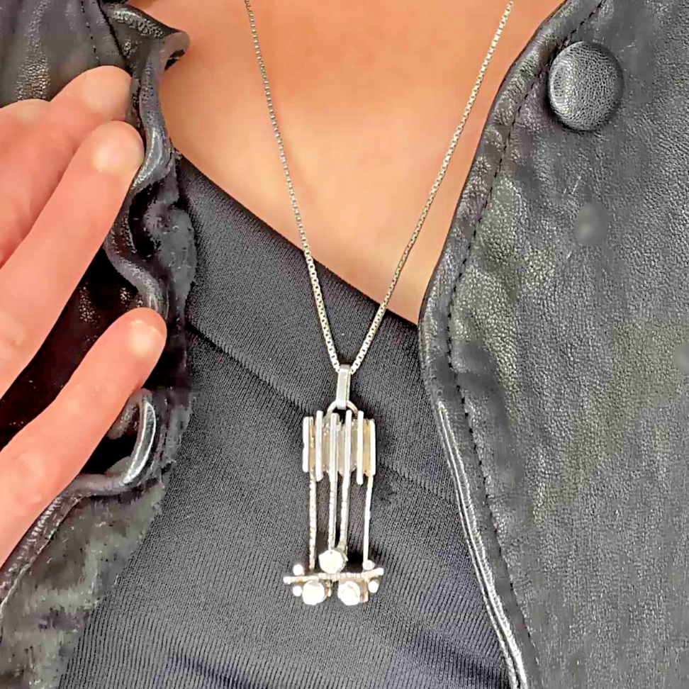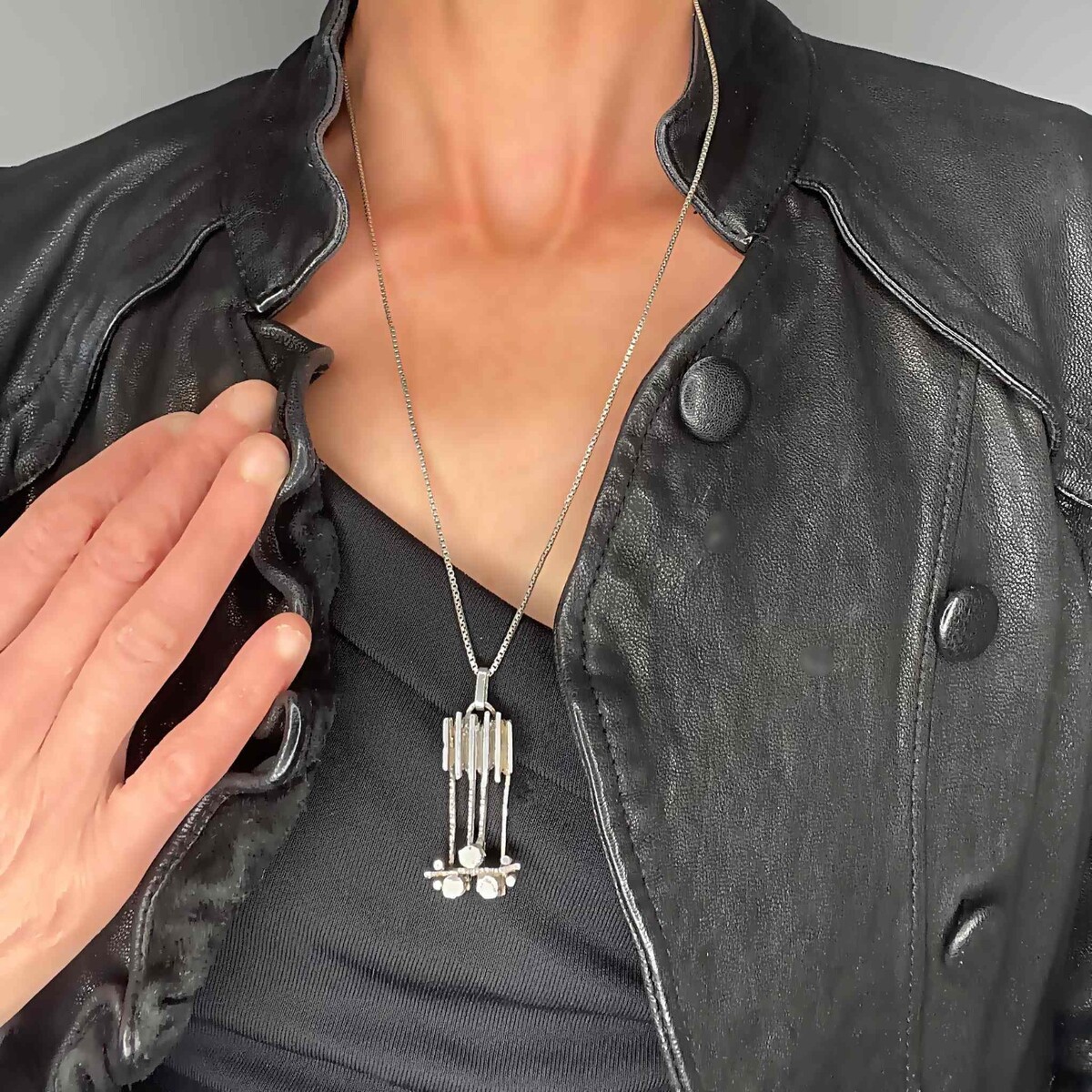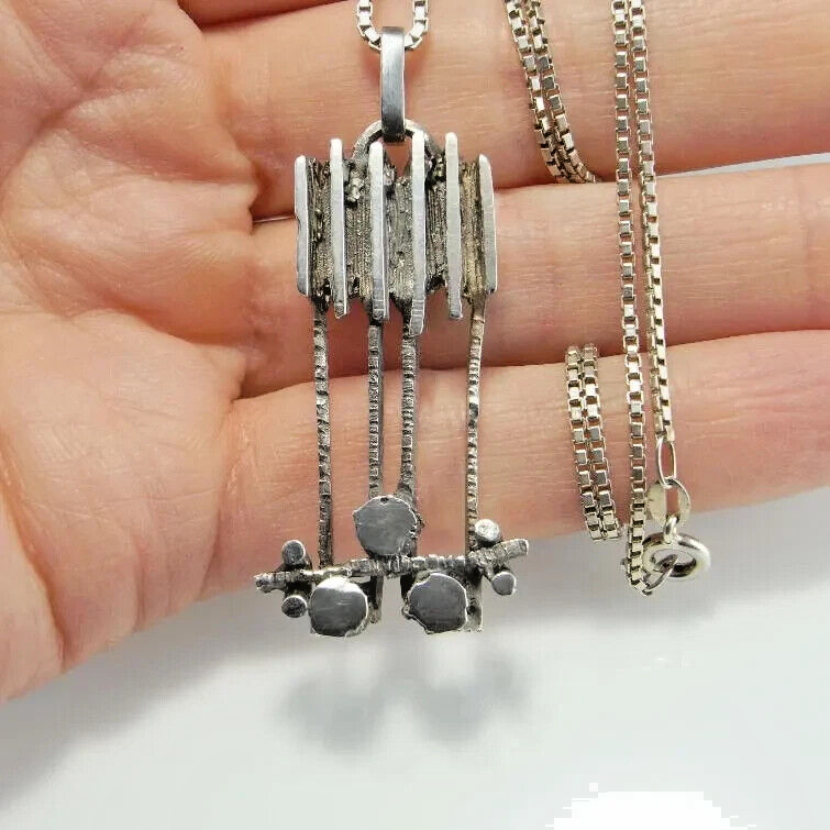 70s vINTAGE Handmade Silver Geometric Pendant Necklace Make OFFER