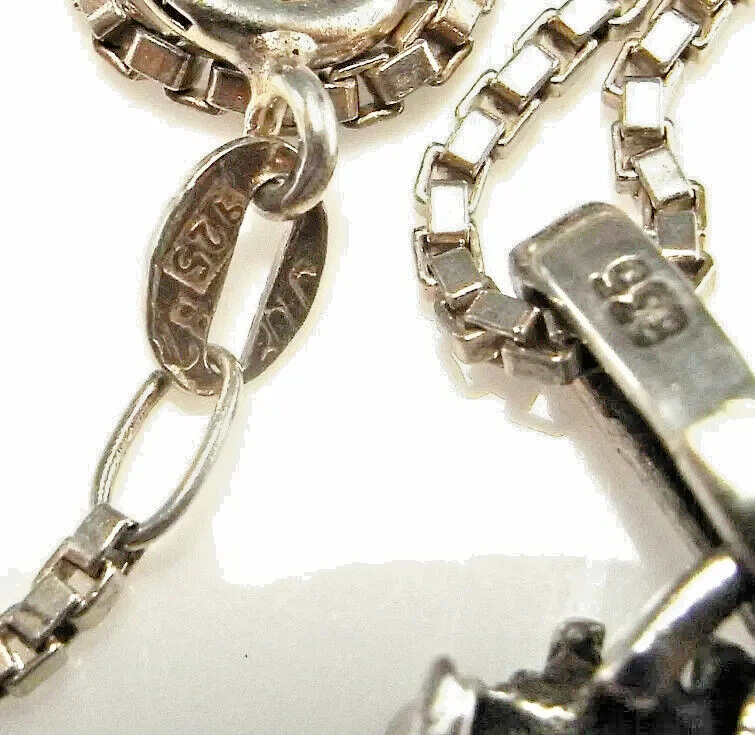 It comes with a box link sterling silver chain marked 925. The pendant itself was made in Europe and is 835 European silver. The pendant is marked 835 on the bale.