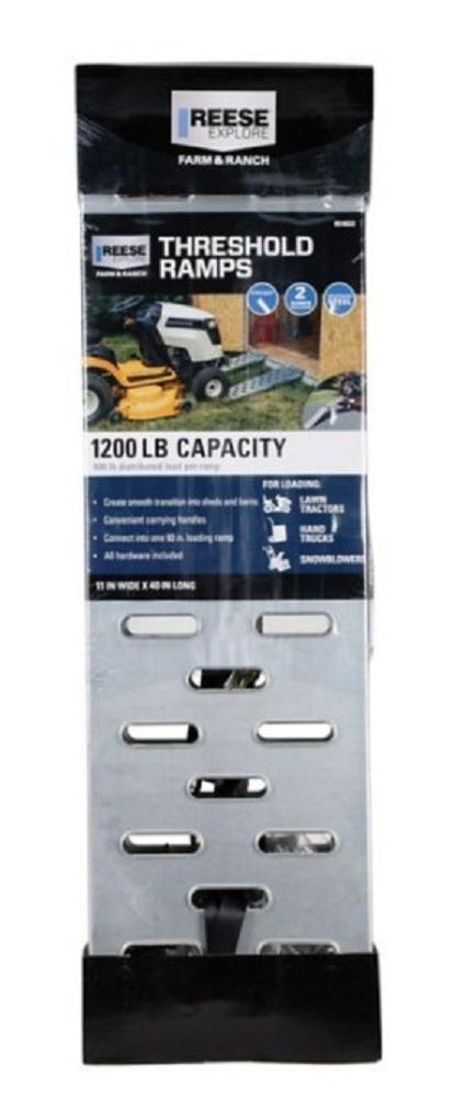 Smoothly load equipment over uneven terrain with the Reese Explore Steel Threshold Ramp. The threshold ramp is made from steel for rugged strength and reliability. The dimensions of the threshold ramp measure 11 in. x 40 in.