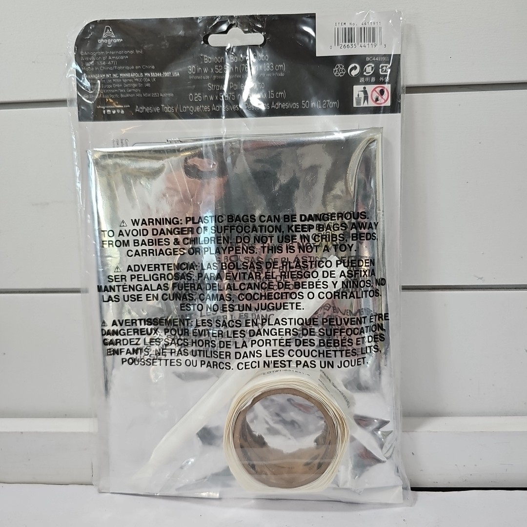 The product is a large foil number 3 balloon in silver color, perfect for celebrating birthdays. This balloon features a solid pattern, a shape of numbers, and a theme of a loving family. It is waterproof, reusable, and can be hung, making it a versatile decoration for any birthday celebration. The balloon is from the brand Anagram and is made in China. Perfect for adults looking to add a touch of celebrity theme to their party supplies.