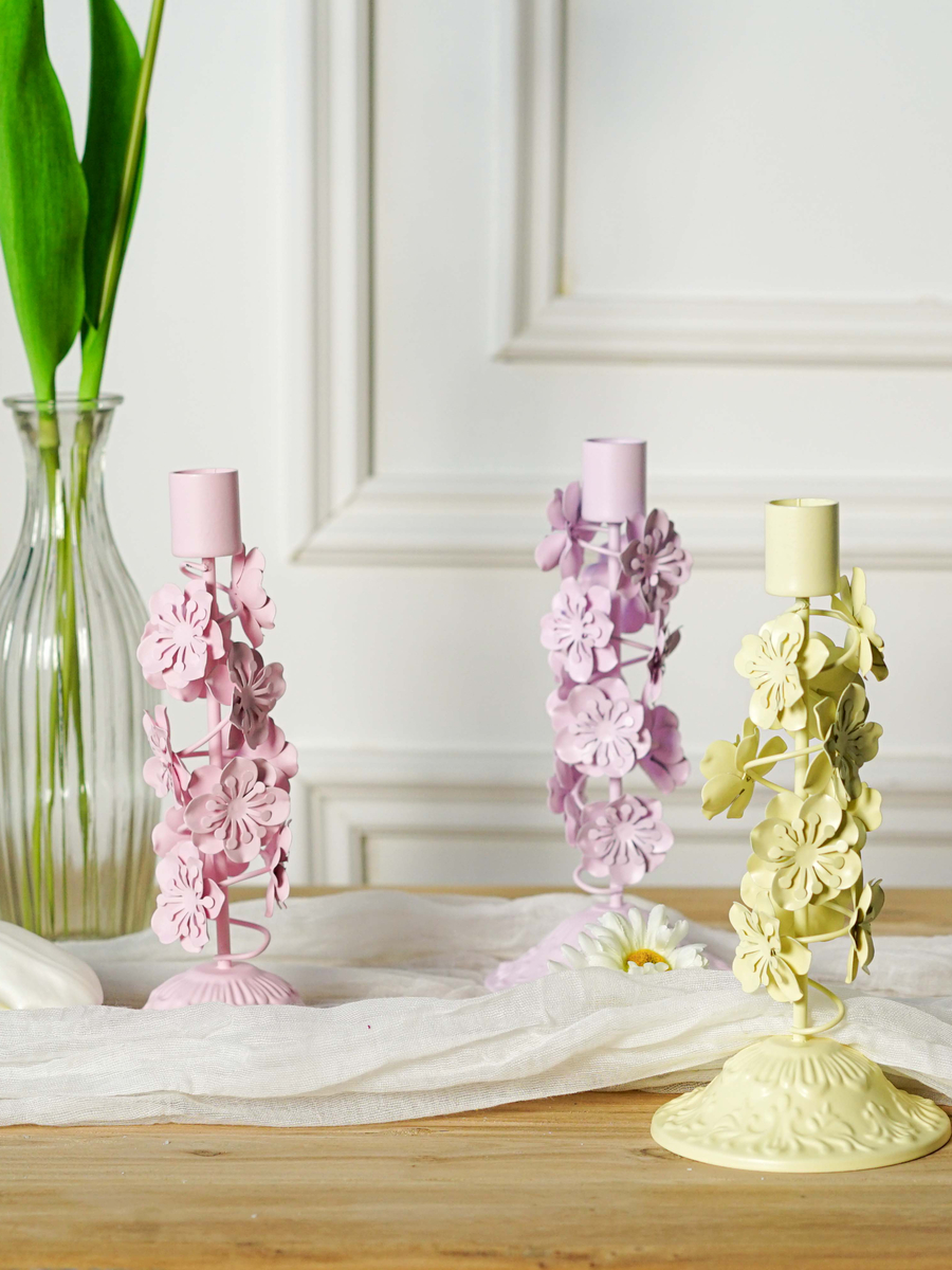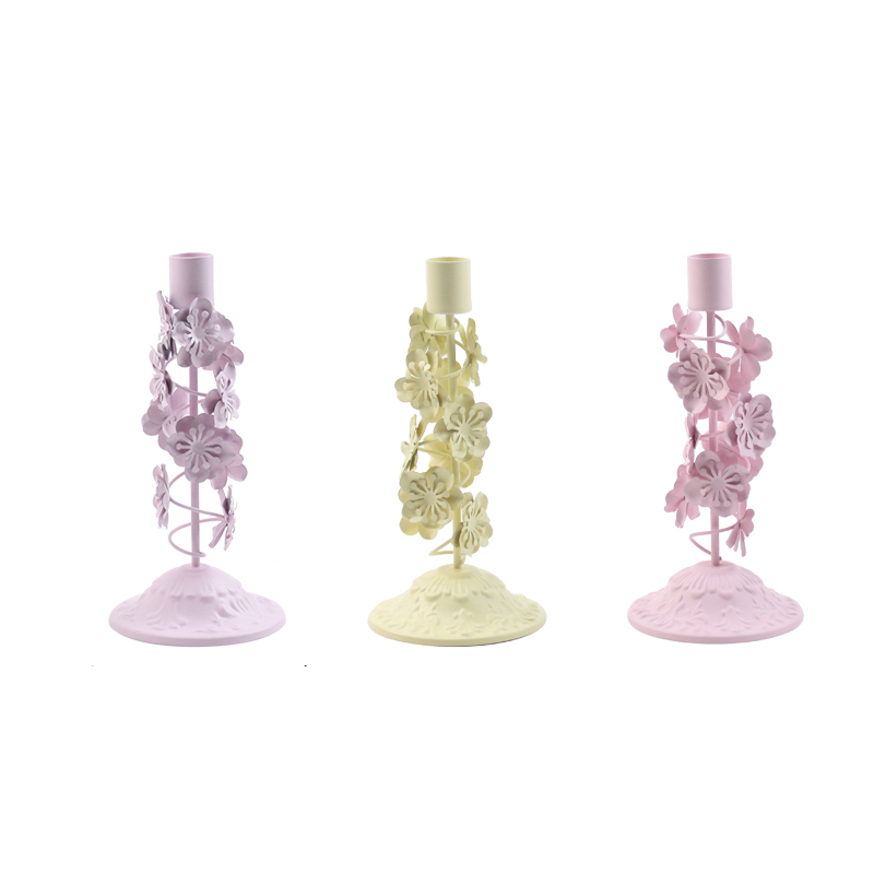 100 Sets of 3 Metal Floral Candle Holders – Three Colors