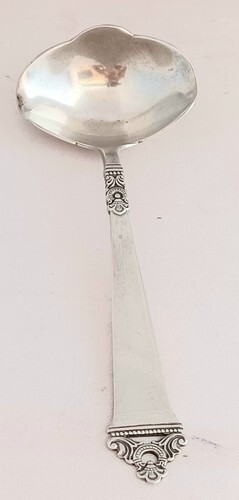 Sterling silver Sauce Ladle with Spout 5 3/8" in Pattern #1 by H. Nils. It is not monogrammed and is in excellent condition.