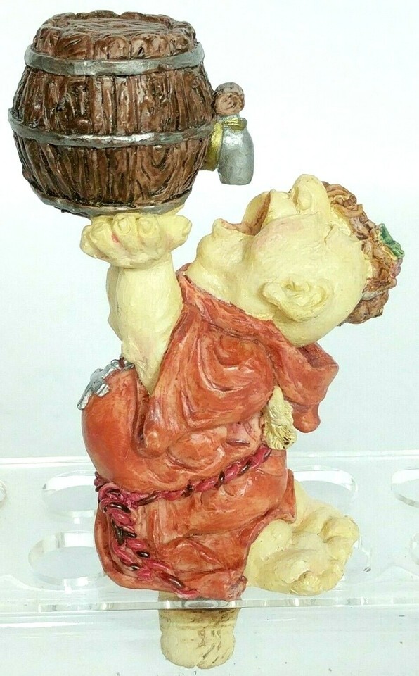 Vtg Monk Drinking From Barrel Keg Wine Grapes Man Cave Wine Stopper 5.5"