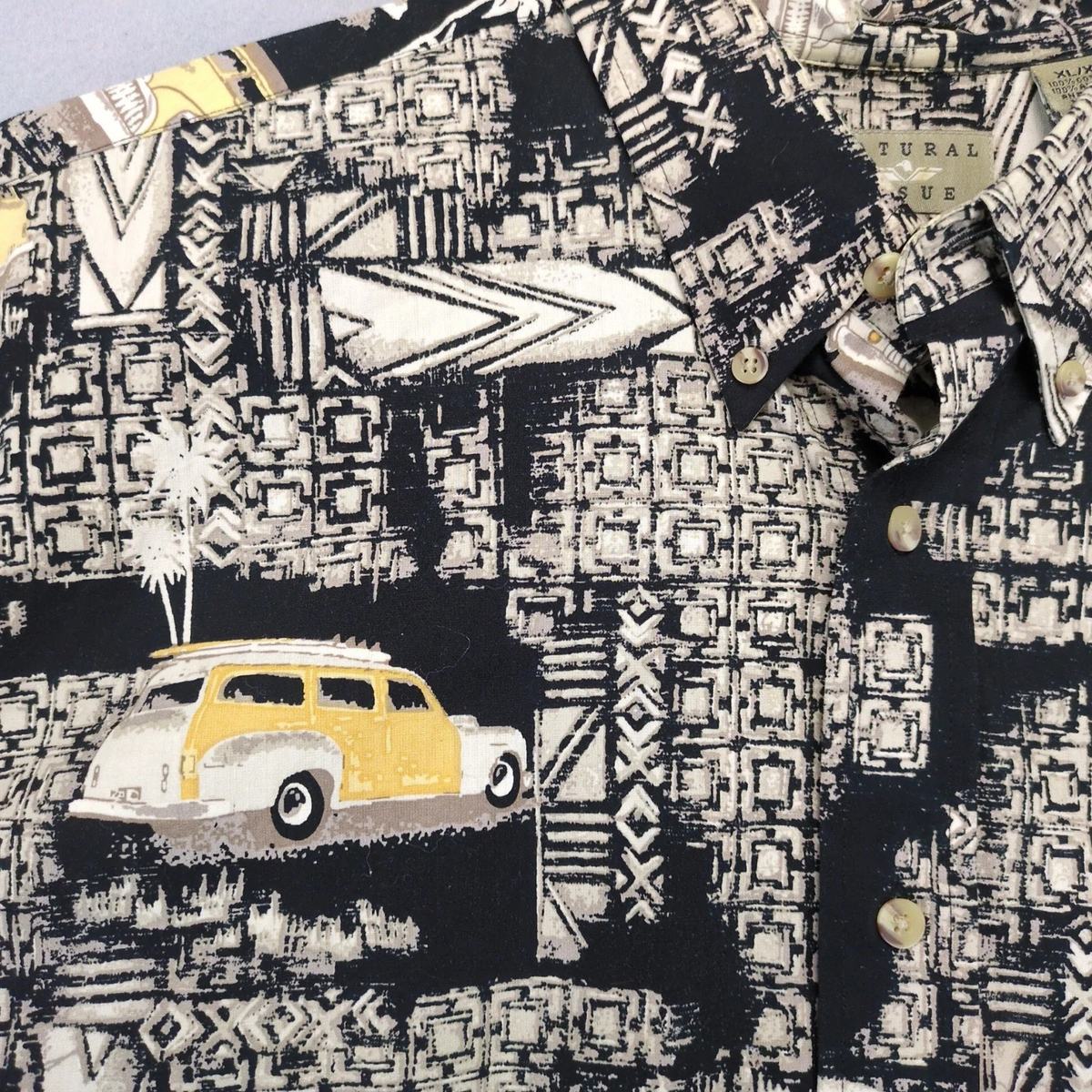 Vtg Natural Issue Hawaiian Shirt Men's XL Button Down Black Cotton Woody Surfer