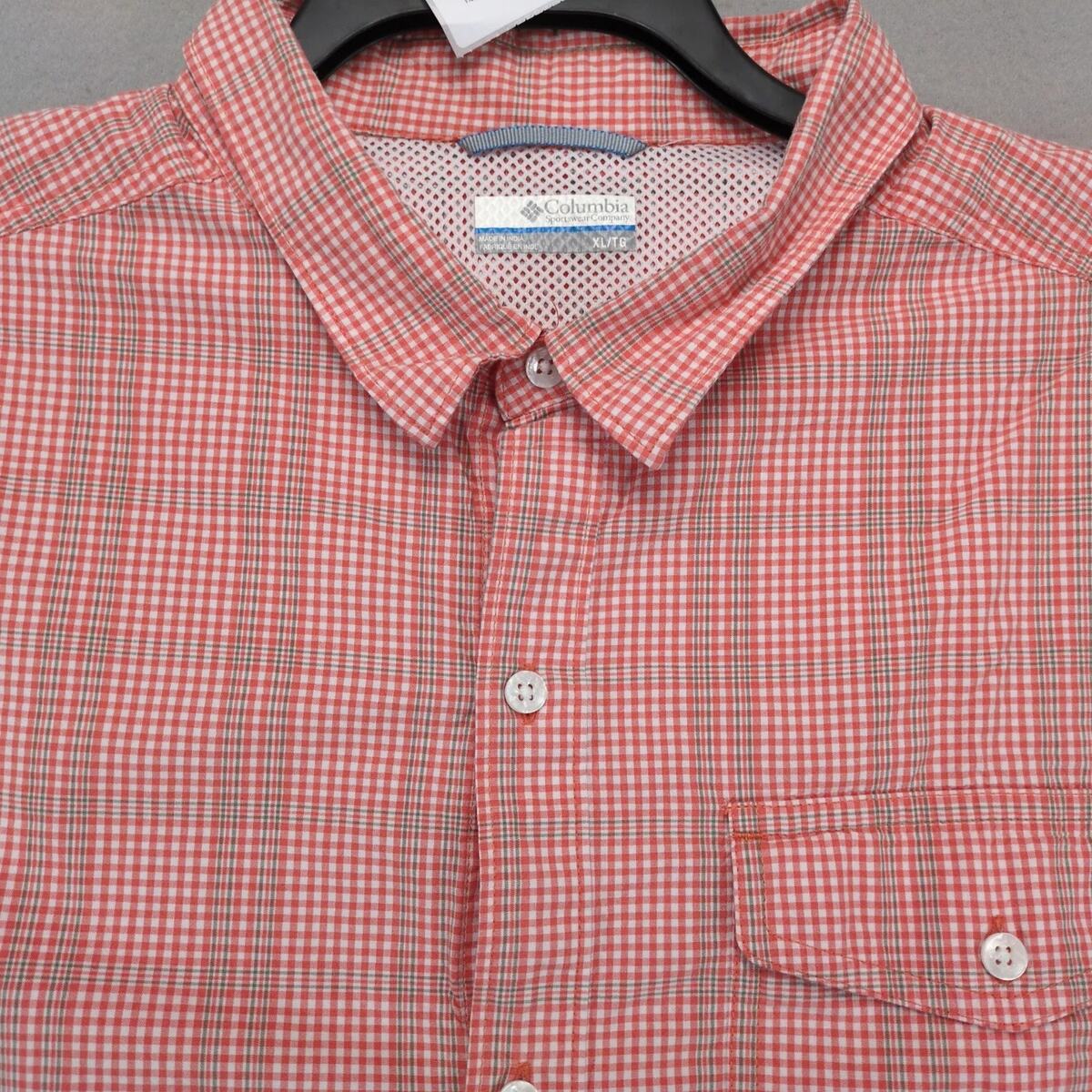 Columbia Sportswear Orange Plaid Button Up Shirt Men's XL Short Sleeve Vented