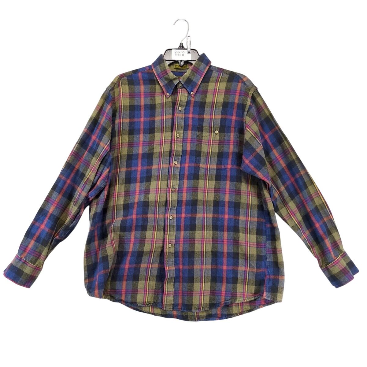 Vtg Boston Traders Plaid Flannel Button Down Shirt Men's L Long Sleeve