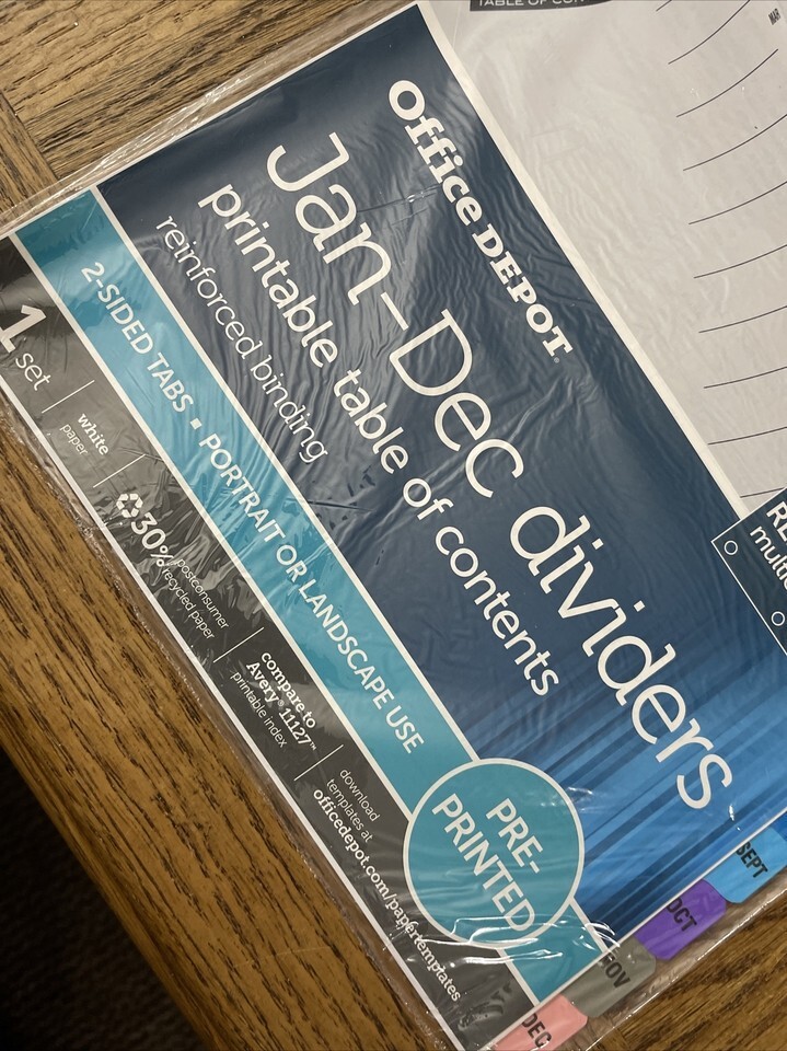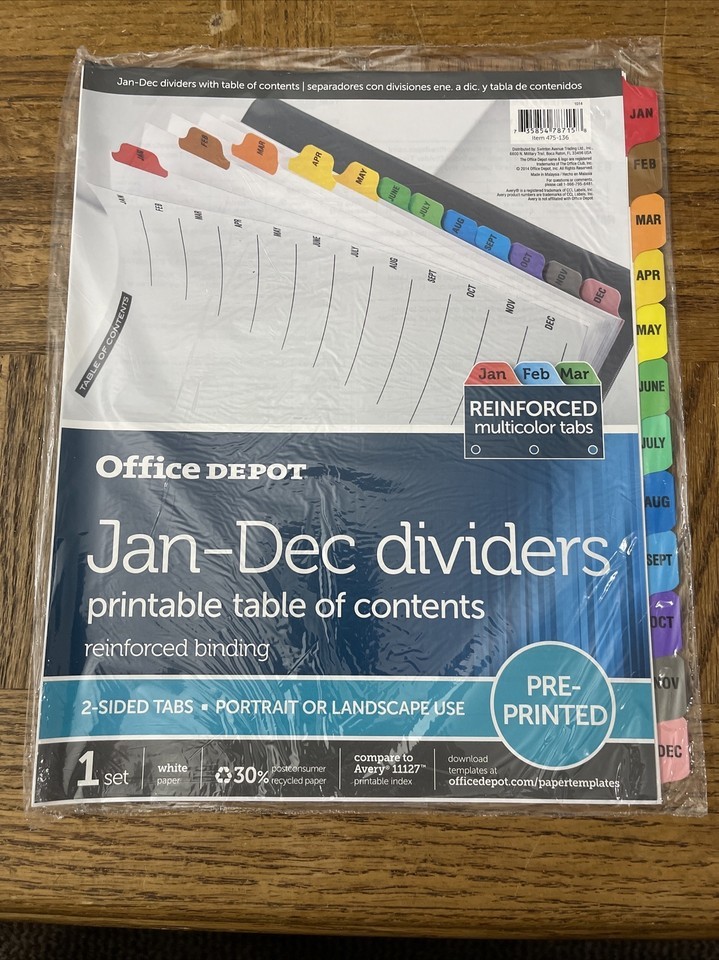 Stay organized throughout the year with these Jan-Dec dividers from Office Depot. Designed for easy customization, each divider features a printable table of contents and is made from high-quality materials that will stand up to daily use. These dividers are perfect for anyone looking to keep their office or workspace neat and tidy, without sacrificing style or functionality.