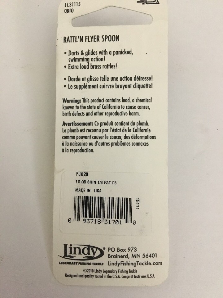 Lindy Rattl'N Flyer Spoon-Techni-Glo Gold Shiner-1/8 oz FJ020-RARE-SHIPS N 24 HR