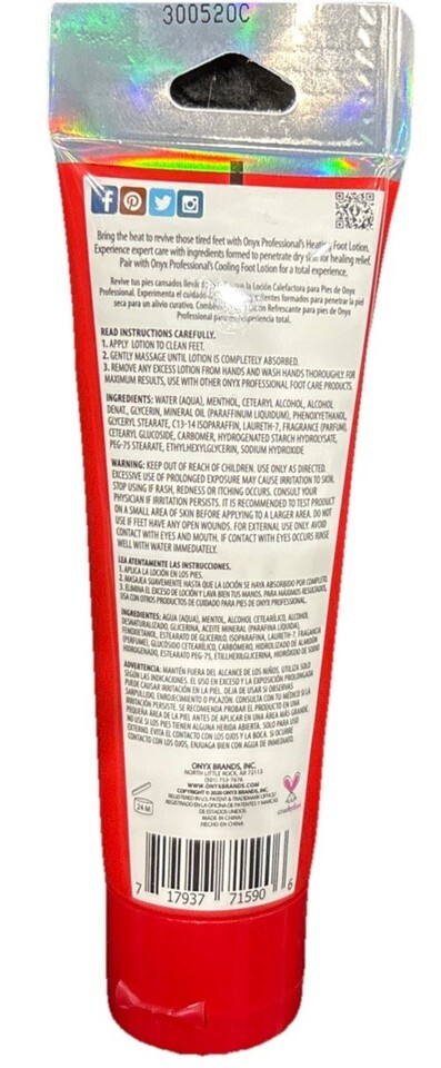 Onyx Heating Foot Lotion In Warm Vanilla 2.2oz-Results 3 Min-Improves Blood Flow