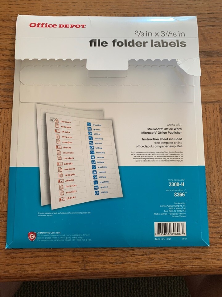 Office Depot File Folder Labels 220-472. Shipped with Expedited Shipping.