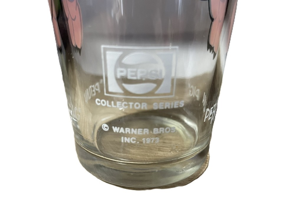 Crafted for fans of vintage memorabilia, this 1973 Petunia Pig Glass Tumbler is a genuine piece from the original Pepsi series. Featuring the beloved character Petunia Pig, this collectable tumbler stands at 6.25 inches and showcases the charm and nostalgia of a bygone era.