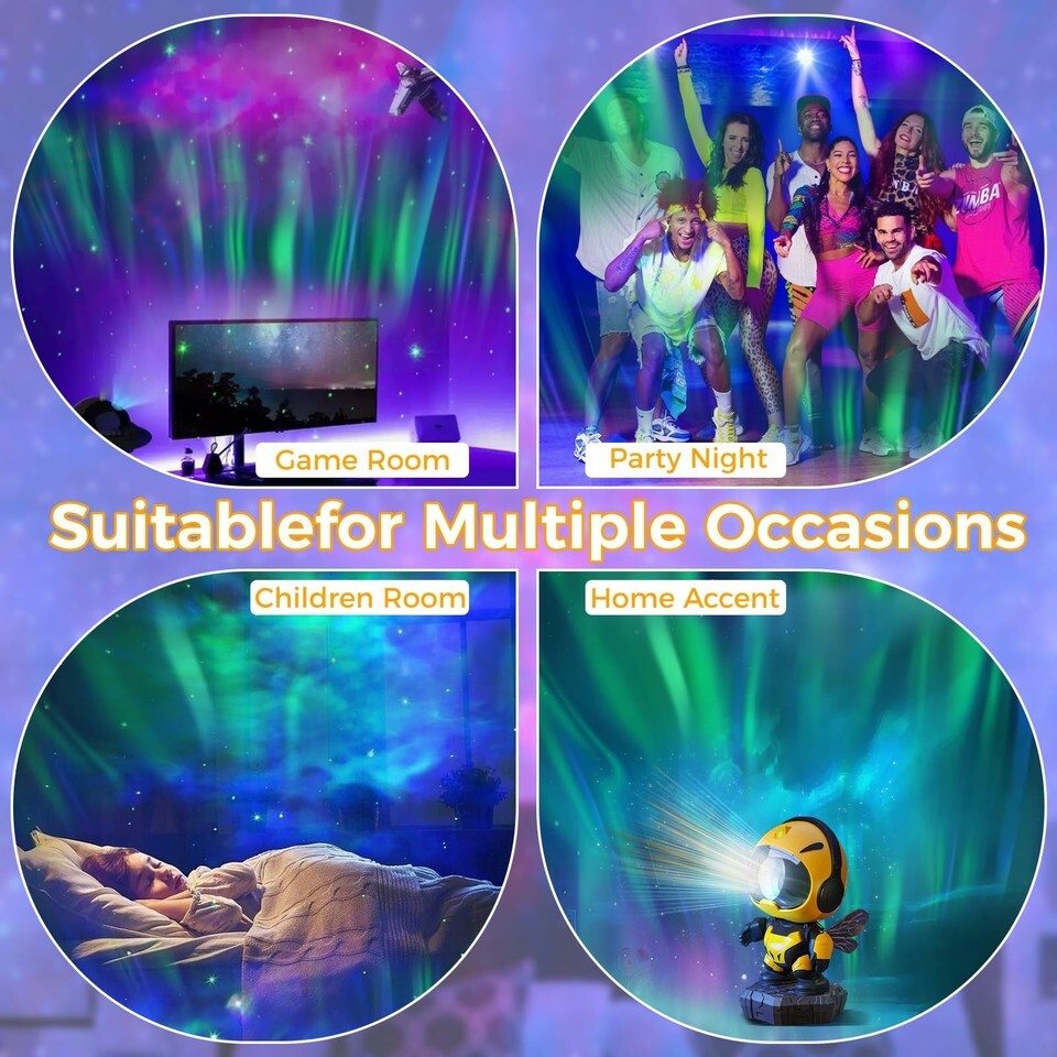 ?Create Ambiance for Many Occasions?We highly value each customer and always strive to provide you with the best kind of service, ensuring customer enjoyment, health, and safety. The Bee star night light projector can be used for bedroom, children's room, game room, home theater, desk decoration, room lighting decoration.It really sets the right mood,when you get home from a long day,turn this galaxy projector on,It makes your whole room feel so relaxing and comfy,It is very suitable for decorating bedrooms, walls, ceilings, birthdays, weddings, parties, and Christmas decorations. The perfect gift for family, friends and children.