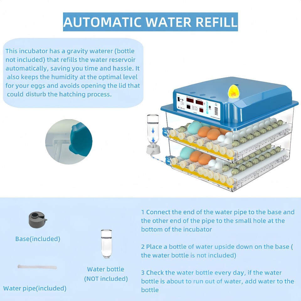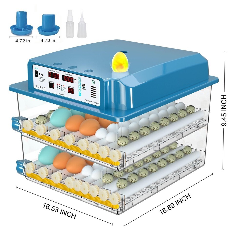 High-Capacity Versatile ? Hatch up to 120 chicken eggs, 65 duck eggs, 50 goose eggs, or 130 pigeon eggs with ease. Adjustable roller trays accommodate various egg sizes, perfect for chicken, quail, duck, goose, parrot, and other poultry or bird eggs.