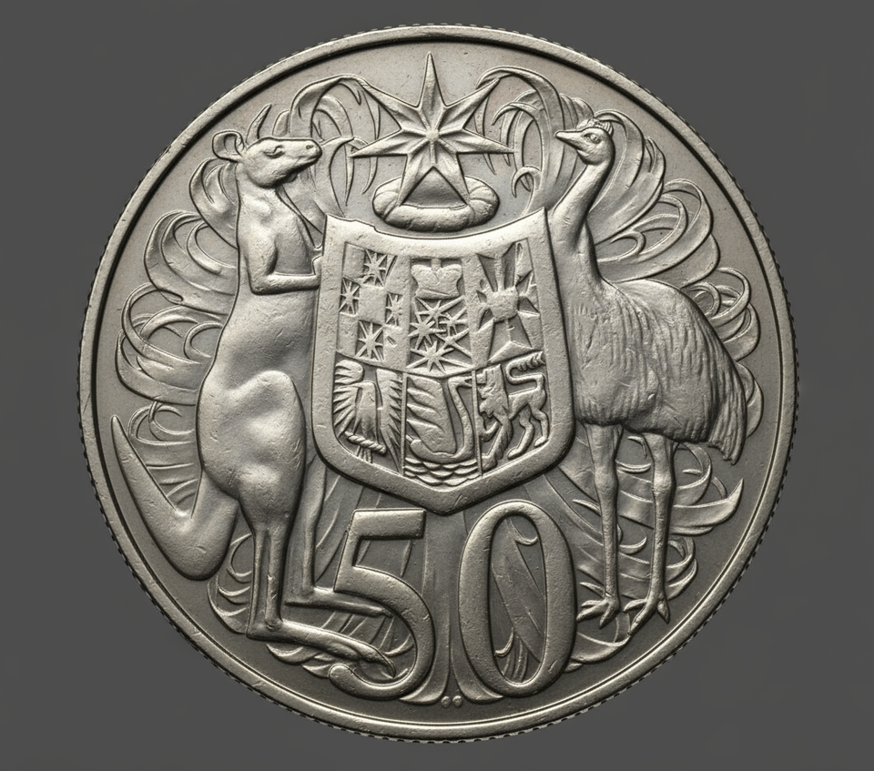 Australia 50 cents, 1966 fantasy medal, event plated, silver color, coat of arms, museum quality, numismatic restrike, kangaroo emu medal, collector's gift, Australian currency history, Commonwealth Star, Elizabeth II medal, vintage numismatics, display medal, Australian memorabilia, classic coin art, Australian shield, collectible medal, antique restrike, luxury fantasy medal.