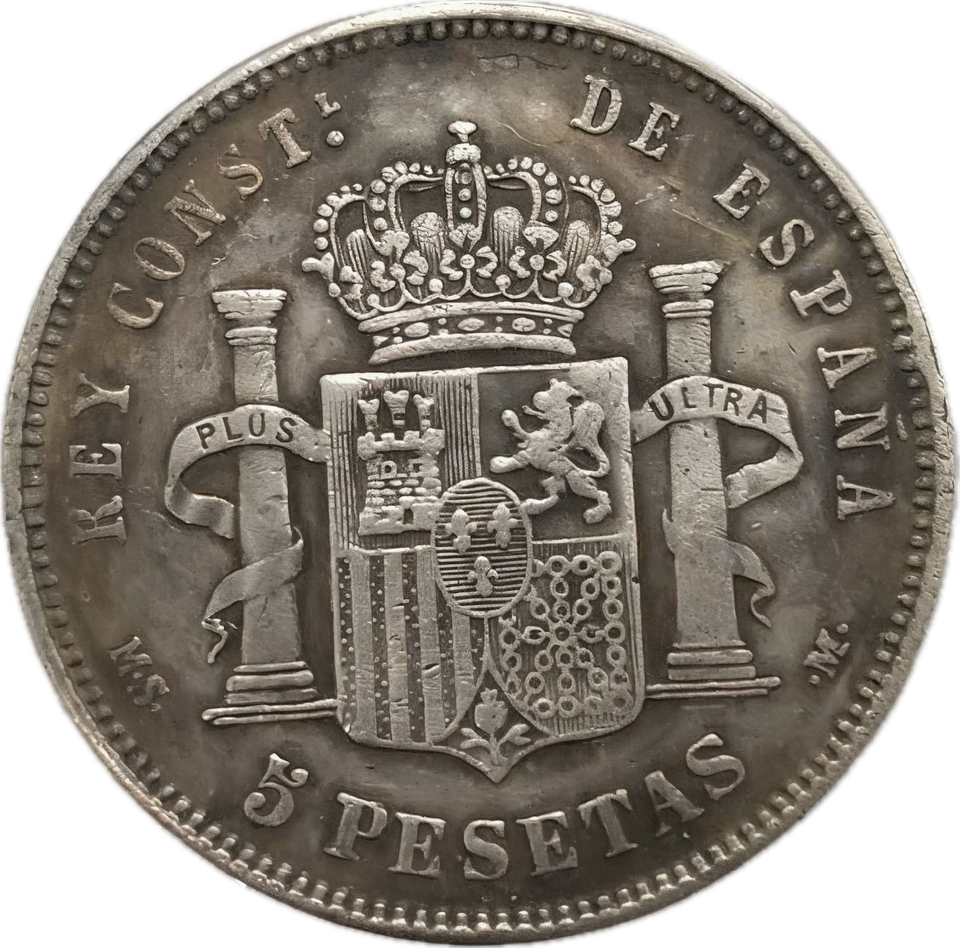 Esta excepcional moneda conmemorativa de 5 pesetas de 1888 rinde homenaje a uno de los monarcas mas emblematicos de España, Alfonso XIII, que ascendio de forma única al trono al nacer?. El anverso presenta el famoso retrato "Baby King", una representacion juvenil de Alfonso XIII coronada por la inscripcion "ALFONSO XIII POR LA G. DE DIOS", con la fecha 1888 colocada en la parte inferior. Este diseño ha fascinado a los coleccionistas durante mas de un siglo debido a la rareza historica de un monarca que nace rey reinante, simbolizando la continuidad y vulnerabilidad de la herencia monarquica. En el reverso, la moneda muestra el escudo heraldico de España, flanqueado por los Pilares de Hercules con el lema PLUS ULTRA, un símbolo del poder imperial y las ambiciones extranjeras. La inscripcion "REY CONST. DE ESPAÑA" refleja el estatus constitucional del monarca durante un período transformador en el gobierno de España. Aunque esta pieza es una reedicion moderna, replica fielmente la finura artística y la gravedad historica del original, por lo que es un distinguido coleccionable para cualquier entusiasta atraído por el linaje real, el simbolismo político y las complejidades de la monarquía española de finales del siglo XIX?.