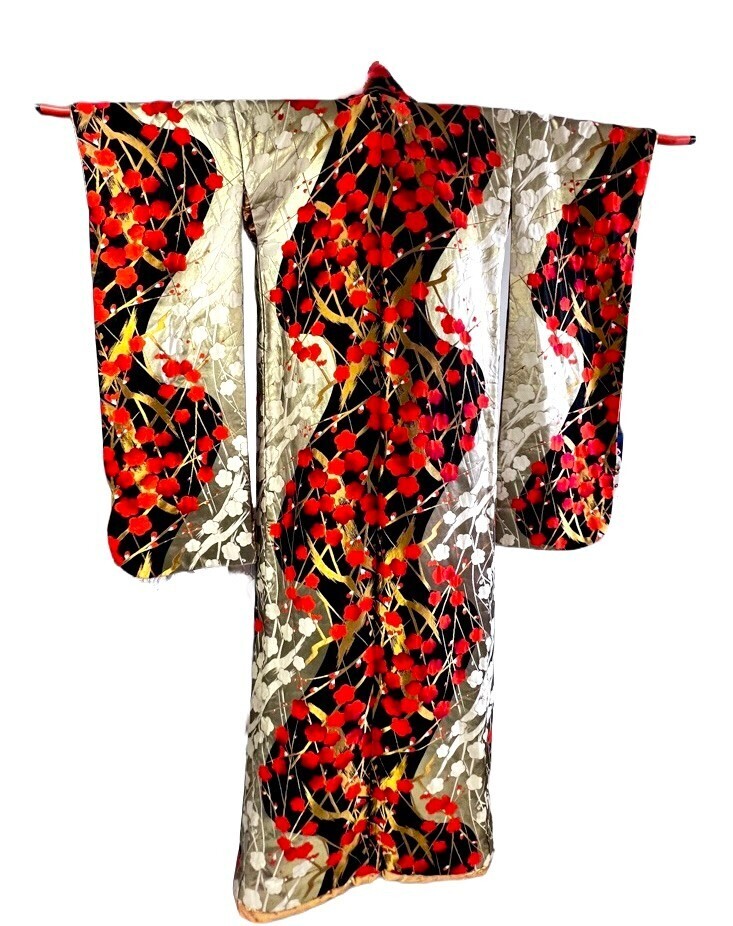 Japanese Kimono Color Uchikake Vintage Silk Black Gold Orange Wedding Luxurious