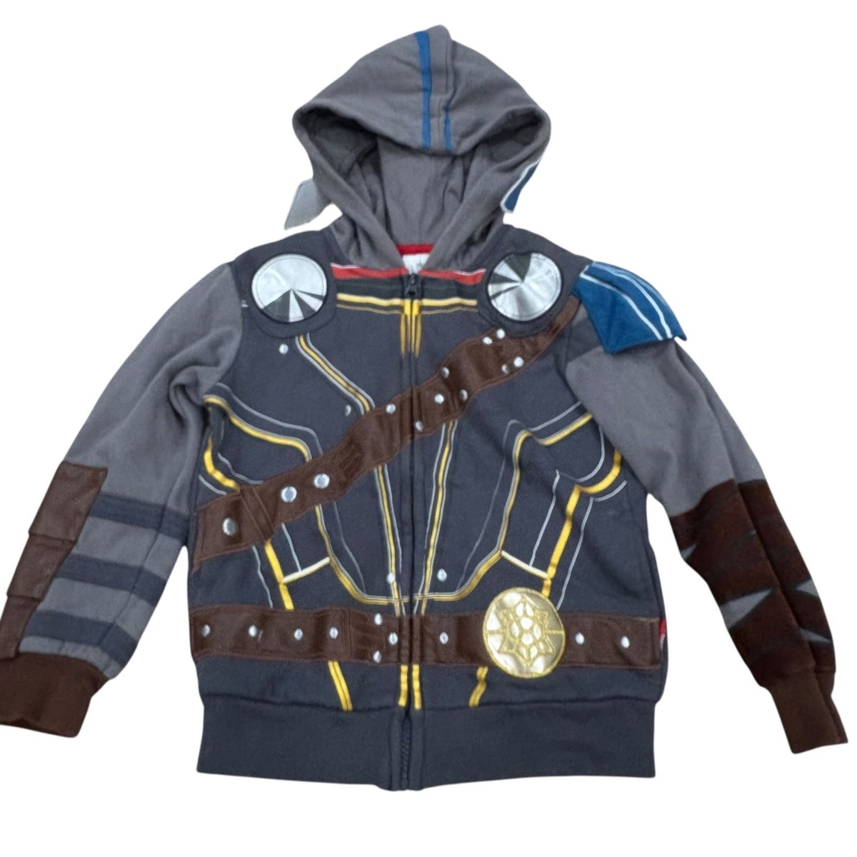 Marvel Disney Thor Hoodie Jacket Kids 5/6 Gray Zip-Up With 3D Details & Printed