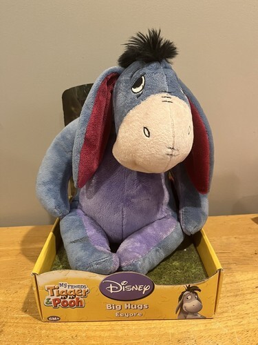 This Disney My Friends Tigger Pooh Big Hugs Eeyore plushie is perfect for any fan of the classic cartoon and TV show. Made of high-quality plush material, this stuffed animal is suitable for children and adults alike. The 1:4 scale and unisex design make it a great addition to any collection.