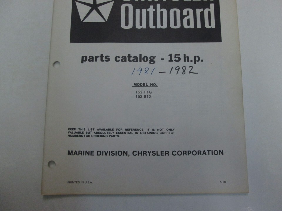 1981 Chrysler Outboard 15 HP 152 H1G B1G Parts Catalog Manual WRITING OB 3629