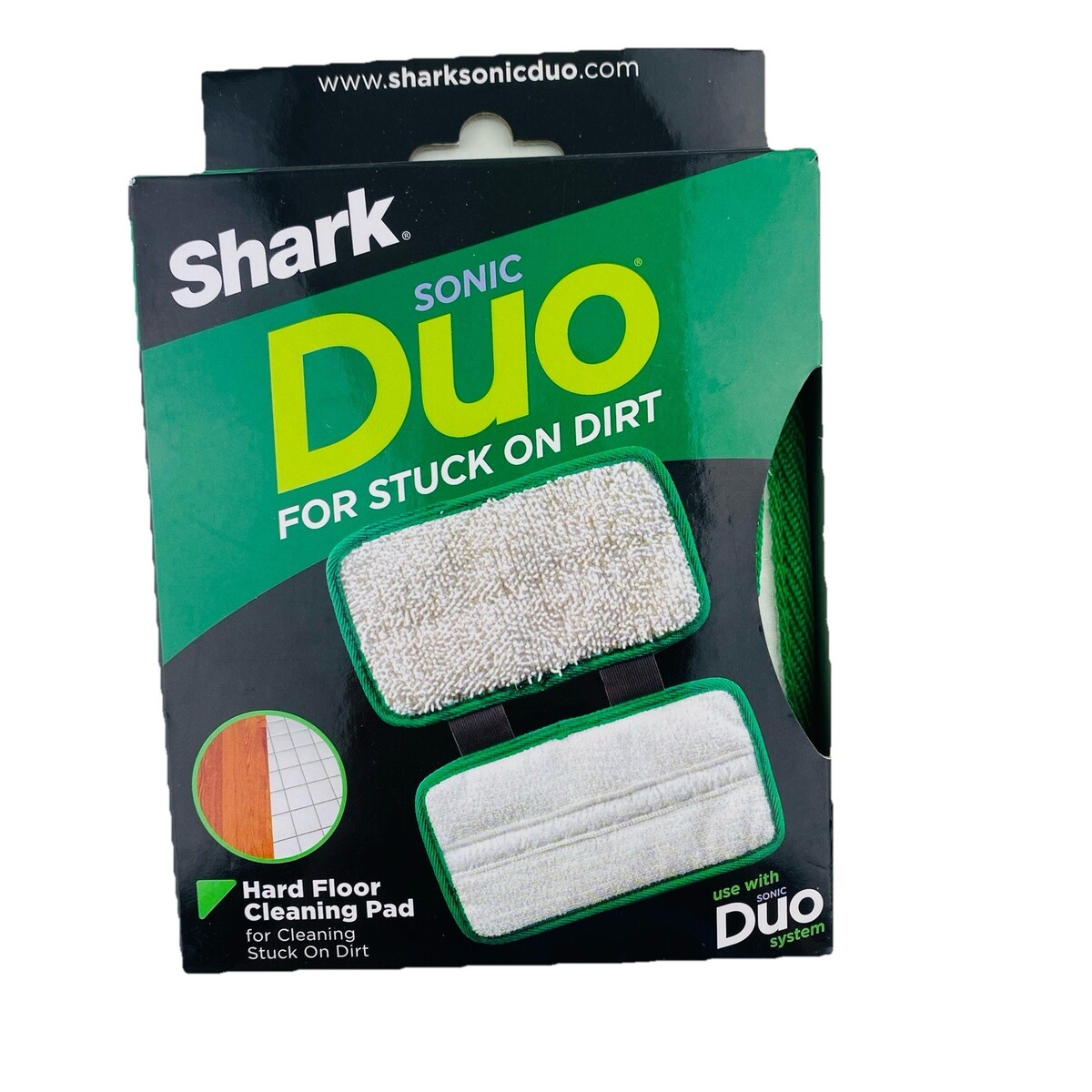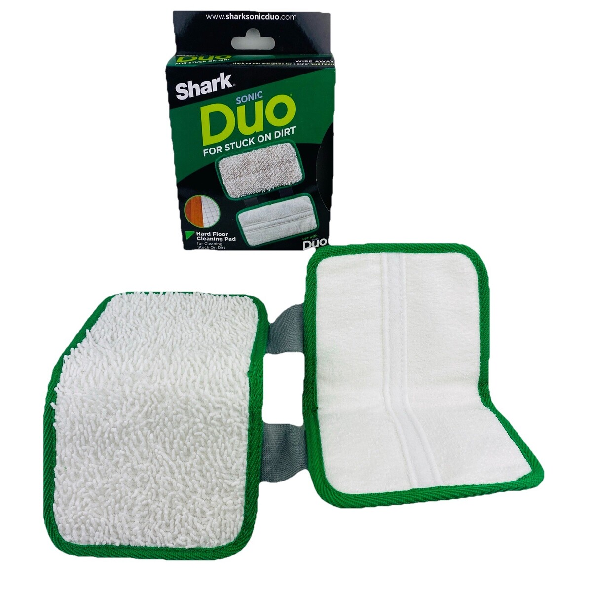 One new-in-box Shark Sonic Duo Hard Floor Cleaning Pad replacement. Green and white. Reusable. Box opened only for pictures. From a smoke-free home. Ships next day!