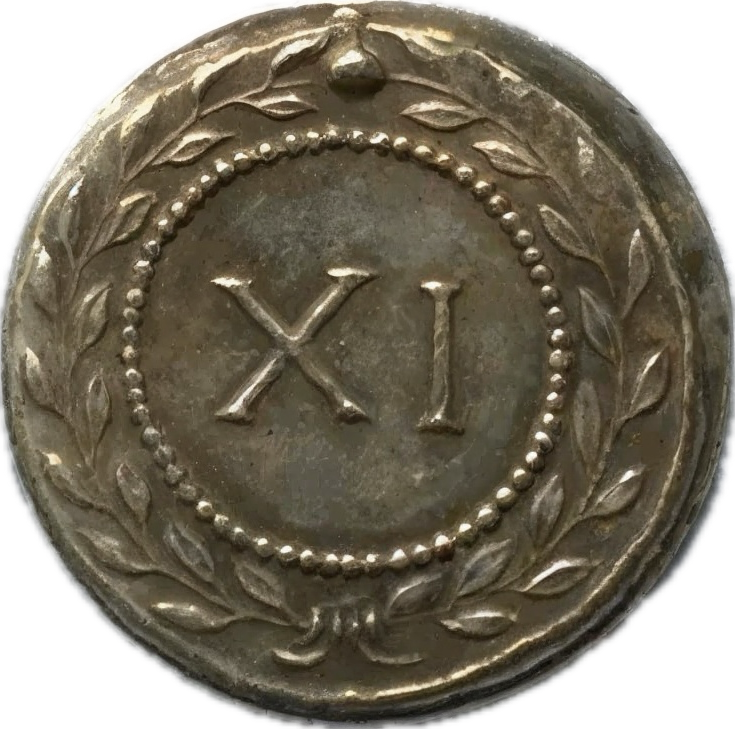 Este intrigante objeto es una restriccion de una espintria romana, una ficha que se cree que circulo en o alrededor de los burdeles romanos durante el período imperial temprano. El reverso presenta el número romano "XI" rodeado por una corona de laurel, lo que probablemente indica un precio, número de habitacion o categoría de servicio. El anverso representa una escena erotica explícita, representada en estilizacion clasica, un sello distintivo de espintrias. Estas fichas reflejan la mezcla única de Roma de estructura pública e indulgencia privada, ofreciendo una ventana sincera a las actitudes antiguas hacia la sexualidad y el comercio.