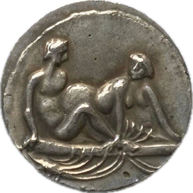 Dieses faszinierende Stück ist eine erotische Spintria-Marke im romischen Stil, die die Zahl XIII in einem Lorbeerkranz auf einer Seite und eine explizite intime Szene auf der Rückseite tragt. Die Komposition zeigt zwei Figuren in sitzender sexueller Pose, positioniert auf einer drapierten Oberflache, mit Aufmerksamkeit auf Korperform und Gesichtsrichtung. Solche Bilder basieren zwar modern in der Ausführung, aber auf echten romischen Artefakten, die in Kontexten verwendet werden, die wissenschaftlicher Interpretation unterliegen ? moglicherweise in Bordellen, Badern oder als Spieltheken. Der Spielstein ist eine zeitgenossische Reproduktion antiker romischer Spintrien, Objekte, die wahrend der Kaiserzeit wahrscheinlich einer privaten oder codierten Funktion dienten. Die Verwendung der romischen Zahl und das Fehlen kaiserlicher Ikonographie legen nahe, dass sie mit den weniger bekannten und privateren Aspekten der romischen materiellen Kultur übereinstimmt. Erotische Spielmarken wie dieser wecken weiterhin Interesse bei Sammlern für ihre unverfrorene Darstellung der alten Sexualitat und des Geheimnisses um ihre ursprüngliche Funktion.