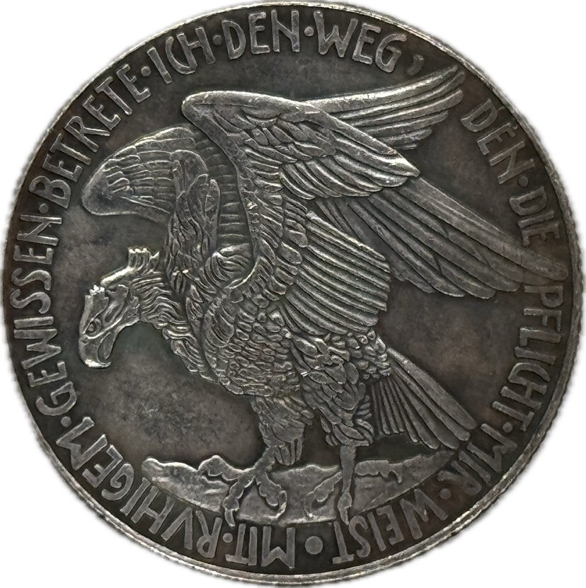 Diese einzigartige Medaille ist zwar eine moderne Pragung, aber ein bedeutendes historisches Artefakt, das die Atmosphare und Rhetorik der frühen Ersten Weltkriegszeit einfangt. Bitte beachten Sie, dass es sich um einen KOPIERTEN ARTIKEL und nicht um ein Original handelt.