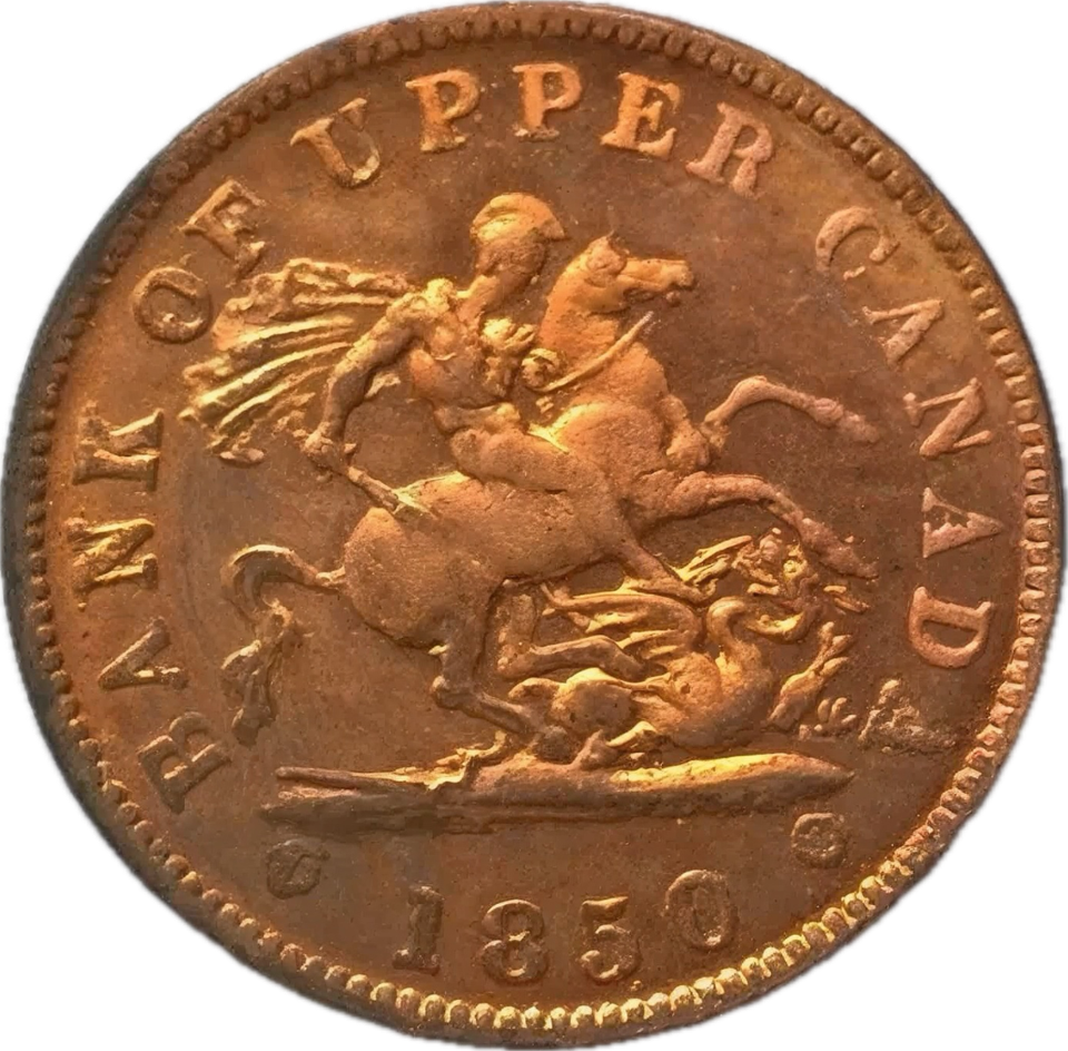 1850 Upper Canada Bank One Penny Medaille - St. George & Dragon Motiv (Nachpr...