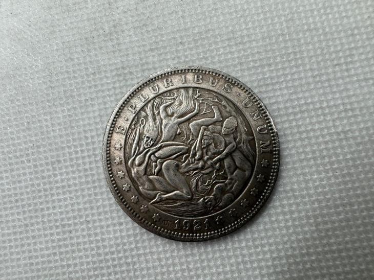 Questa squisita medaglia d'argento, una moderna coniazione dell'edizione del 1921, e un notevole e accattivante esempio di arte numismatica. Il dritto presenta un motivo tradizionale basato sull'iconico dollaro americano Morgan, affrontato con un tocco innovativo e artistico. La superficie principale e dominata da un'incisione intricata e riccamente dettagliata raffigurante una scena dinamica e drammatica di diverse figure impegnate in una lotta. Intorno a questo vivido quadro c'e l'iscrizione "E Pluribus Unum", una frase latina che significa "Tra molti, uno", che e stata a lungo associata agli ideali di unita e solidarieta, impregnando la medaglia di un profondo significato simbolico.