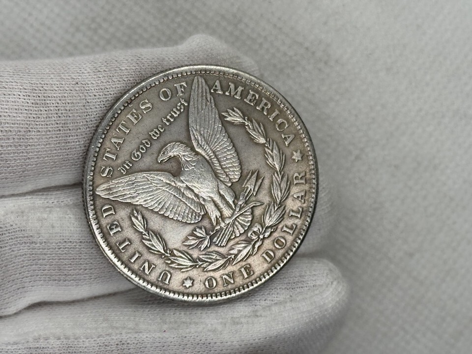 In contrasto con il design classico della moneta storica, l'artista ha infuso una nuova espressione di bellezza oscura legata al misticismo. Il rovescio mantiene il motivo tradizionale dell'araldica dell'aquila degli Stati Uniti, fornendo un contrasto sorprendente con lo stravagante dritto. Questo pezzo artistico e una testimonianza della moderna artigianalita numismatica, dove incisori di talento trasformano monete storiche in nuove forme con ricche narrazioni.