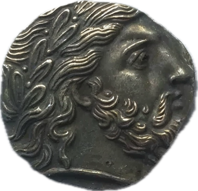 Riproduzione dell'antica medaglia della Tessaglia - Zeus Laureato e Cavallo d...