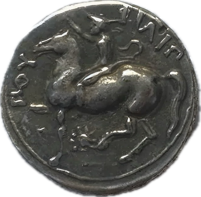 Questo impressionante pezzo numismatico rappresenta una restrizione dettagliata ispirata all'antica monetazione greca. Il dritto presenta in modo prominente un ritratto finemente inciso di Zeus, la divinita principale della mitologia greca, raffigurato con caratteristiche distintamente classiche, tra cui una barba riccamente dettagliata e un'acconciatura con corona di alloro. Zeus, spesso raffigurato come il dio del cielo, del tuono e della giustizia, era venerato in tutto il mondo greco, simboleggiando l'autorita suprema e la saggezza divina. Questo manufatto numismatico accuratamente ricreato cattura l'essenza dell'artigianato e dell'espressione artistica del periodo ellenistico, rendendolo un'acquisizione ideale per gli appassionati di antiche civilta.Al contrario, e esposta una rappresentazione dinamica di un cavaliere, che illustra il valore e l'abilita militare ammirati nell'antica cultura greca. Tali immagini simboleggiavano tradizionalmente nobilta, potere e prestigio, temi comuni che risuonavano con le aspirazioni delle citta-stato durante l'antichita. Le iscrizioni greche che circondano il motivo autenticano la sua ispirazione storica, sottolineando la dedizione all?accuratezza nella creazione di questo pezzo. Come restrizione, consente ai collezionisti moderni di sperimentare una connessione tangibile con il passato storico senza compromettere la rarita e l'esclusivita delle monete antiche originali. Perfettamente adatta per appassionati e storici, questa moneta funge sia da elegante oggetto da collezione che da bene educativo.