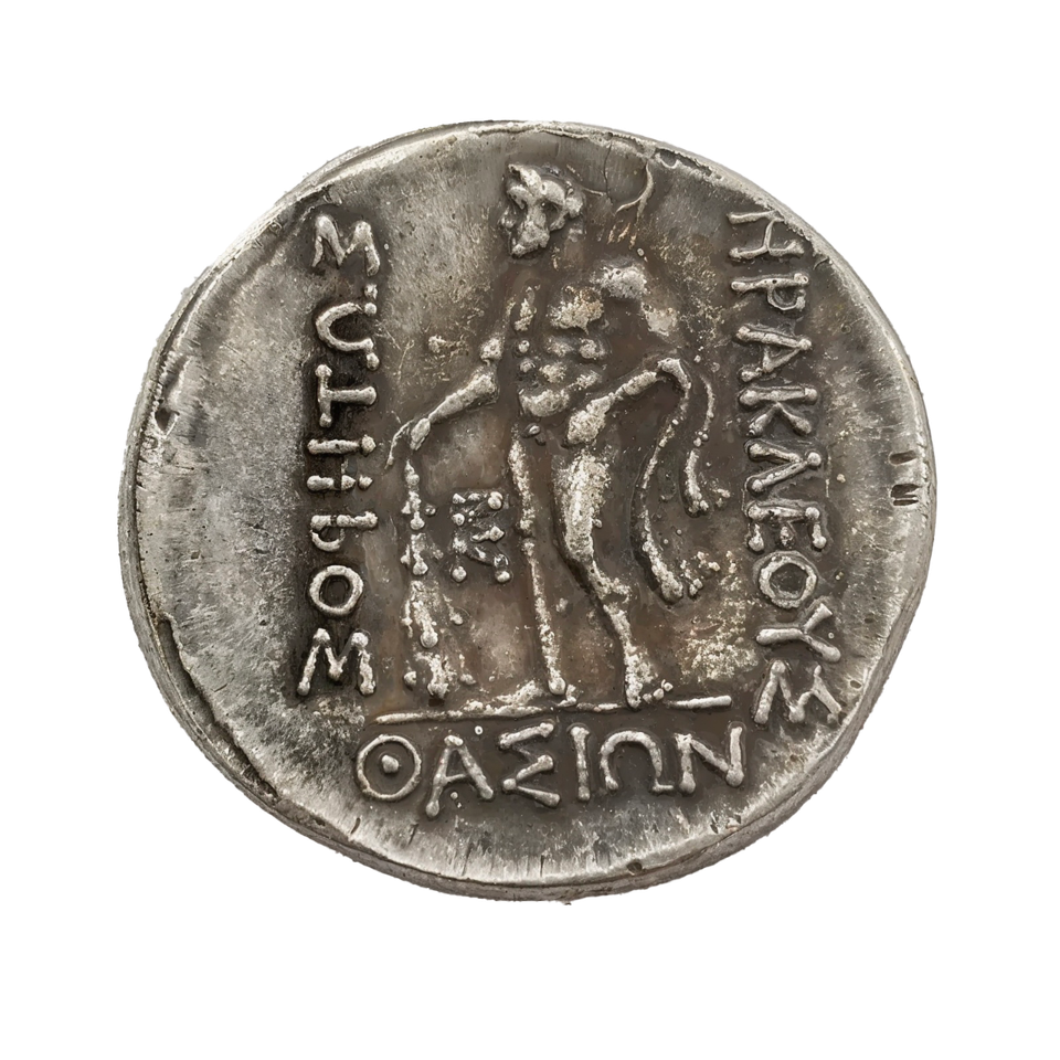 Antica medaglia greca restrizione - Eracle di Thasos con ritratto dionisiaco