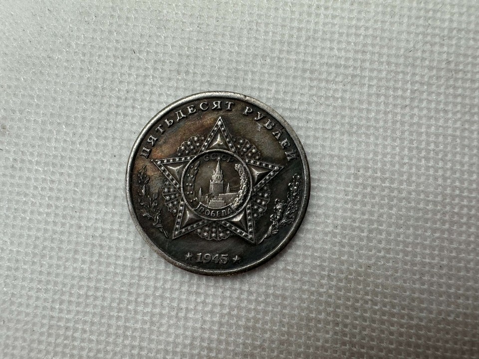 Questa medaglia commemorativa presenta un design sorprendente che rende omaggio a questo leggendario carro armato. Da un lato, la medaglia espone intricate opere d'arte che rappresentano il KV-1, mentre sul retro presenta una stella a cinque punte al centro del Cremlino, completata dalla scritta "???????? ??????" (quindici rubli) e l'anno 1945. Queste immagini servono come commovente promemoria della fine della seconda guerra mondiale e del trionfo delle potenze alleate. La combinazione della stella, della corona di alloro e della parola "??????" (vittoria) evoca collettivamente sentimenti di vittoria e celebrazione della pace dopo anni di conflitto.