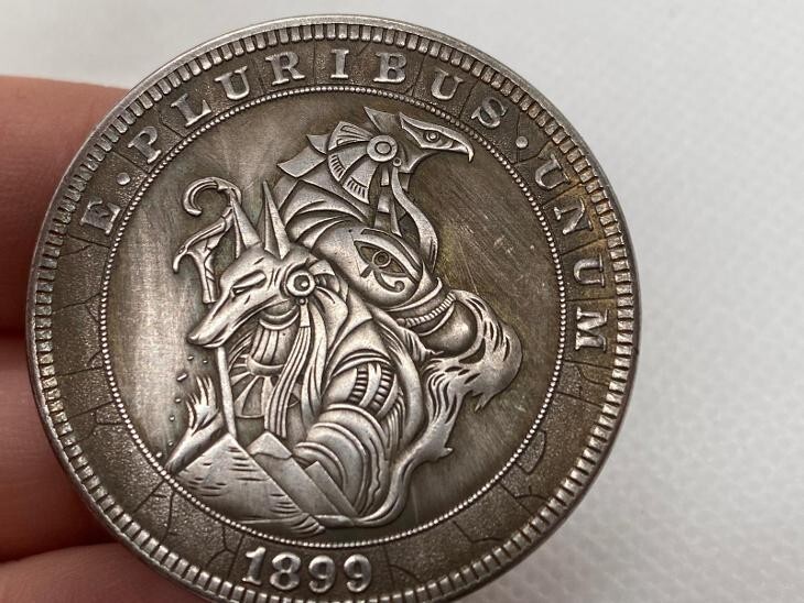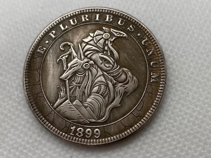 Ti presentiamo la moneta fantasy dell'antico Egitto: Anubis Horus 1899 Replica, un pezzo accattivante che collega il simbolismo egizio classico e antico. Colpita nel 1899, questa moneta presenta le suggestive immagini di Anubi, l'antico dio egizio dei morti, insieme a Horus, simbolo del cielo e della protezione. Il design riflette un fascino per l'antico Egitto e la mitologia che era prevalente durante la fine del XIX e l'inizio del XX secolo.Il dritto della moneta reca il motto classico "E Pluribus Unum", che significa unita, che risuona con i temi dell'unione nella societa moderna. L'anno di conio, il 1899, si allinea con un periodo caratterizzato da un intenso interesse per le civilta antiche e i loro ricchi simbolismi.Sul retro, la moneta presenta un motivo tradizionale americano di un'aquila, raffigurato in un'insolita forma scheletrica. Questo design distintivo offre un'estetica drammatica e unica che lo distingue dalle monete standard dell'epoca. La giustapposizione del patriottismo tradizionale con elementi artistici non convenzionali invita a riflettere sulle nozioni di transitorieta e mortalita, influenzate da contesti culturali e storici.Questa replica di nuova moneta e ideale per i collezionisti che apprezzano motivi unici intrisi di significati simbolici più profondi. Serve non solo come oggetto da collezione, ma anche come antipasto di conversazione, perfetto per mostrare una miscela di storia, mitologia e arte. Aggiungi oggi stesso questo splendido pezzo alla tua collezione.